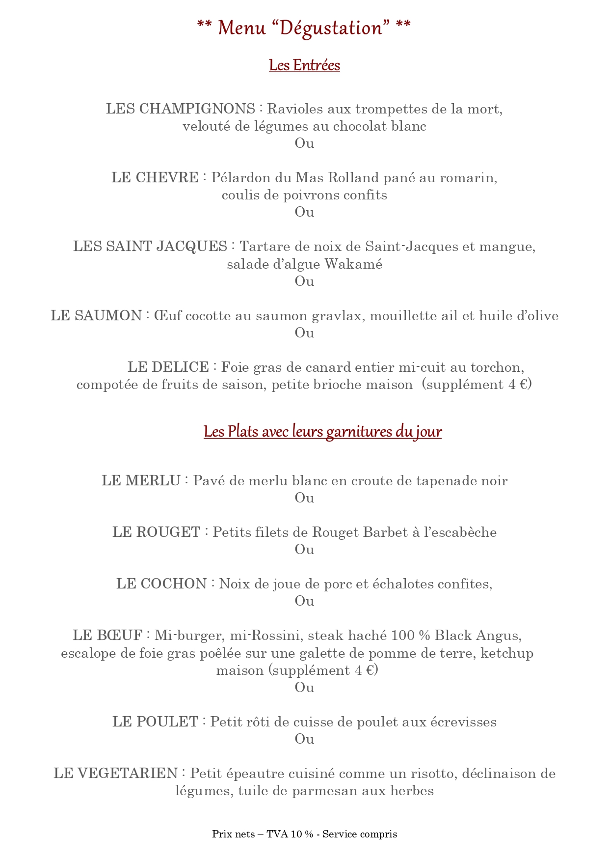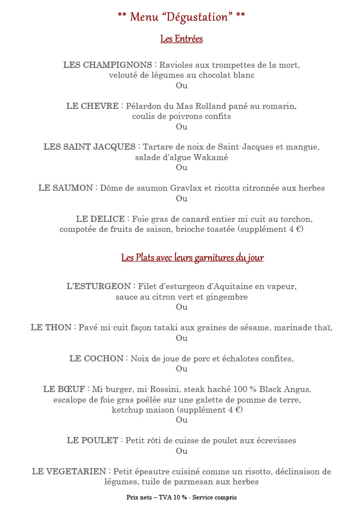 Ouverture possible les midis sur réservations pour les groupes, repas d’affaires, séminaires, ……